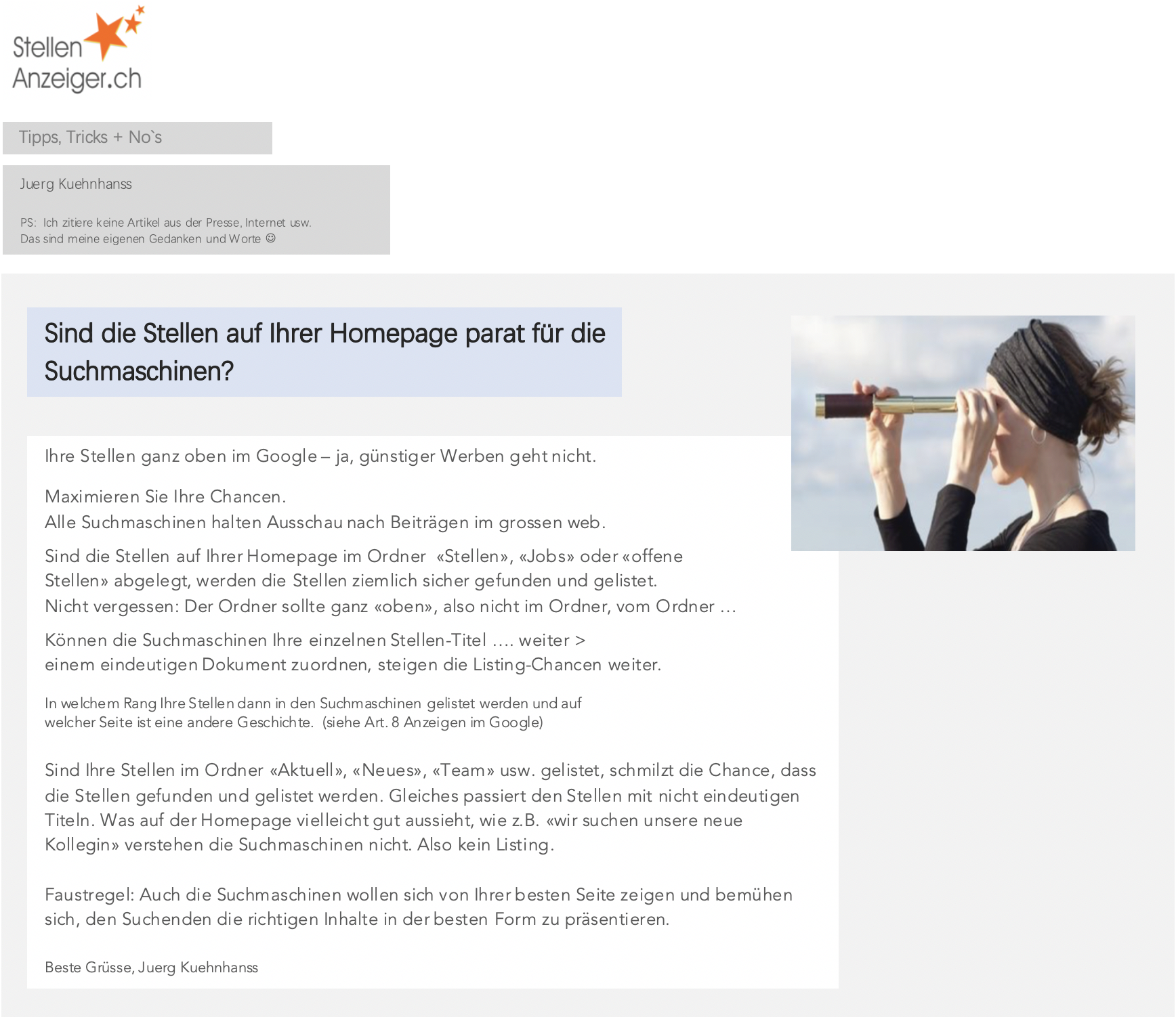 Stellen finden Stellen inserieren Personalberatungen Personalberatungen Tipp's WERBUNG publizieren JOB-App's Lehrstellen finden Lehrstellen gratis inserieren